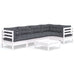 Set mobilier de grădină cu perne, 6 piese, alb, lemn de pin